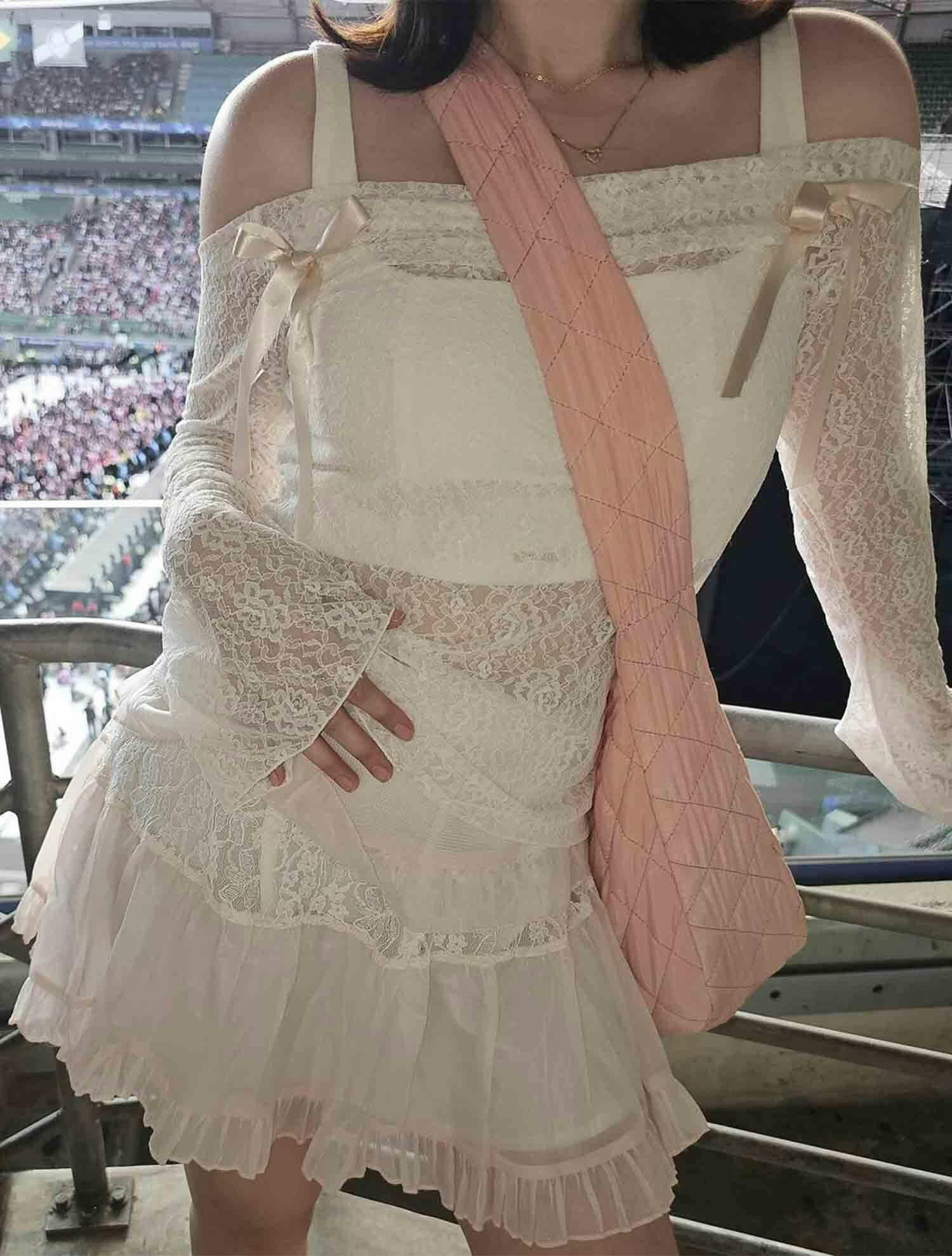 Crafted from delicate lace, this lightweight see-through top brings effortless femininity to any outfit. Featuring graceful bell sleeves and a flattering slim silhouette, it's ideal for layering over camisoles, bralettes, or under slip dresses.